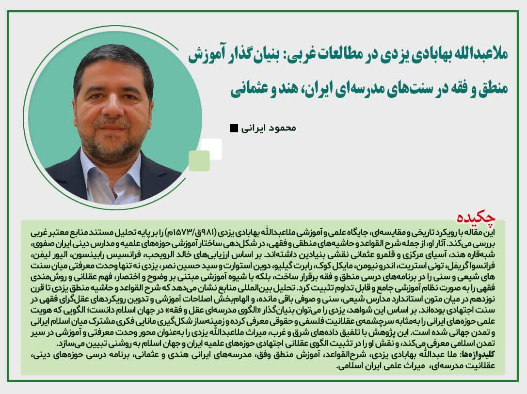 ▫️تحلیل نظام آموزشی در جوار حرمها و نقش علمی علامه بهابادی یزدی در ترویج علوم عقلی و نقلی قرن دهم.