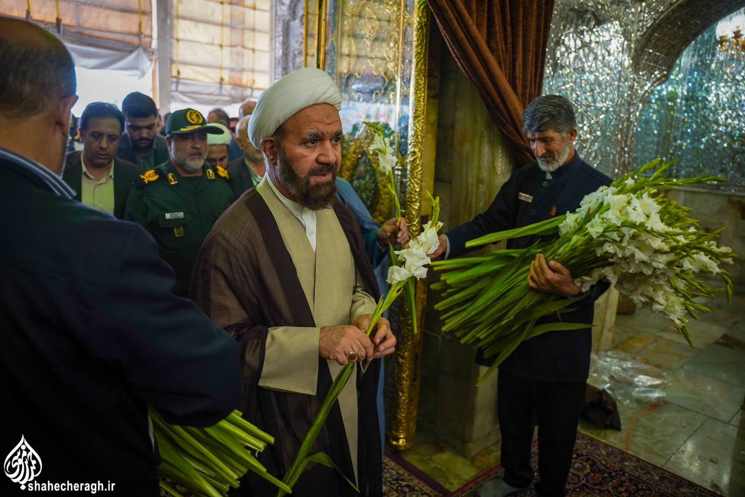 به گزارش روابط عمومی و امور بین الملل آستان مقدس، به همین مناسبت مبارک، صبح امروز مسئولان و اقشار مختلف مردم که از اقصی نقاط استان فارس در قالب کاروان‌های «کوچ عاشقانه»، به سوّمین حرم اهل‌بیت علیهم السلام مشرف شده اند، در آیینی معنوی ضمن گلباران مضجع شریف امین ولایت، با سیدالسادات الاعاظم، تجدید میثاق کردند.
