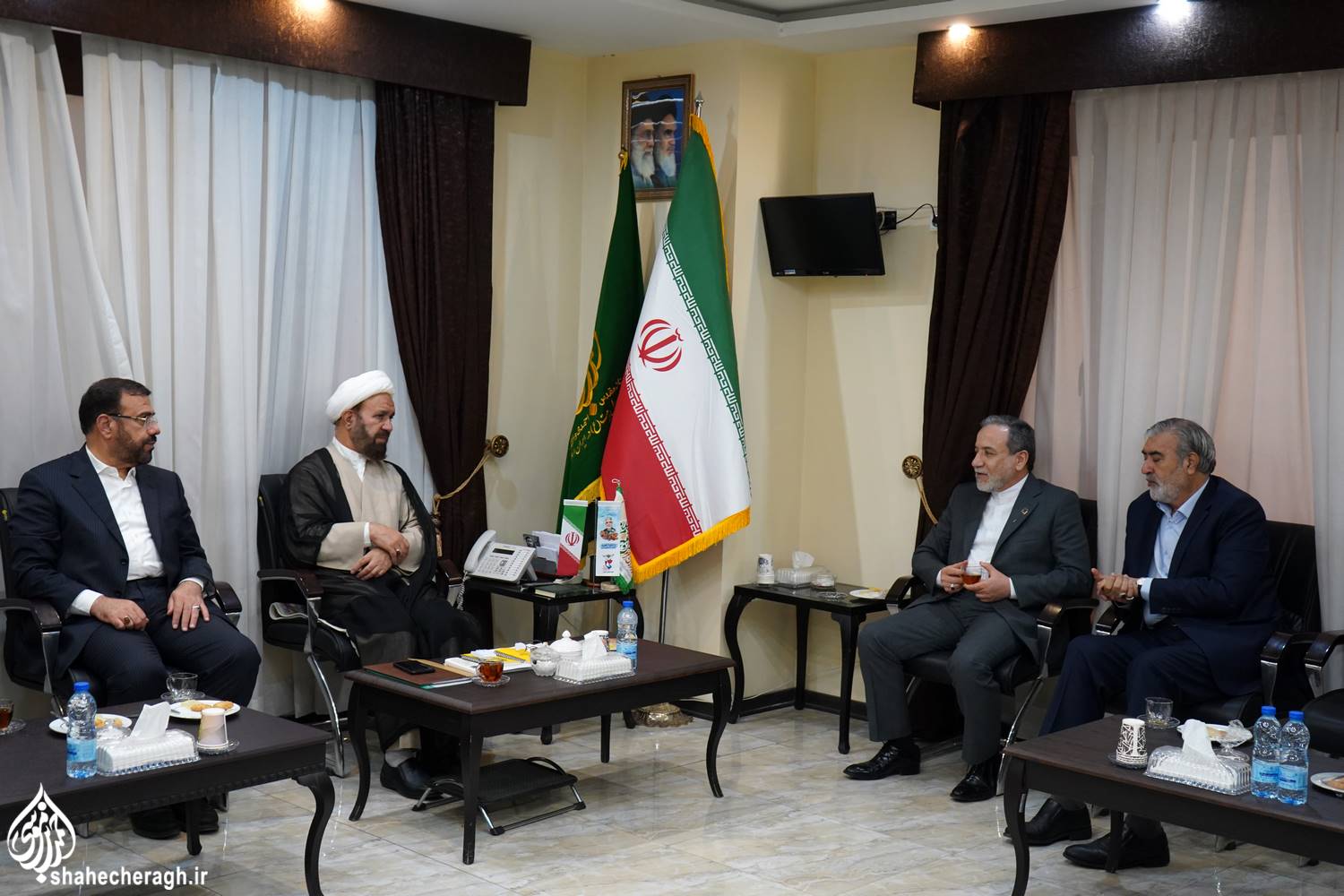عصر امروز پنج‌شنبه ۱ خرداد ۱۴۰۴، دکتر سید عباس عراقچی وزیر امور خارجه جمهوری اسلامی ایران، پیش از سفر به رم و شرکت در دور پنجم مذاکرات ایران و آمریکا، به آستان مقدس حضرت احمدبن موسی الکاظم شاهچراغ علیه السلام، مشرف شد و ضمن زیارت مضجع شریف این امامزاده جلیل القدر و ادای احترام به مقام شامخ شهدای حرم مطهر، با حجت‌الاسلام‌والمسلمین دکتر ابراهیم کلانتری، تولیت آستان مقدس احمدی و محمدی علیهماالسلام، در فضایی صمیمانه دیدار و گفتگو کرد.