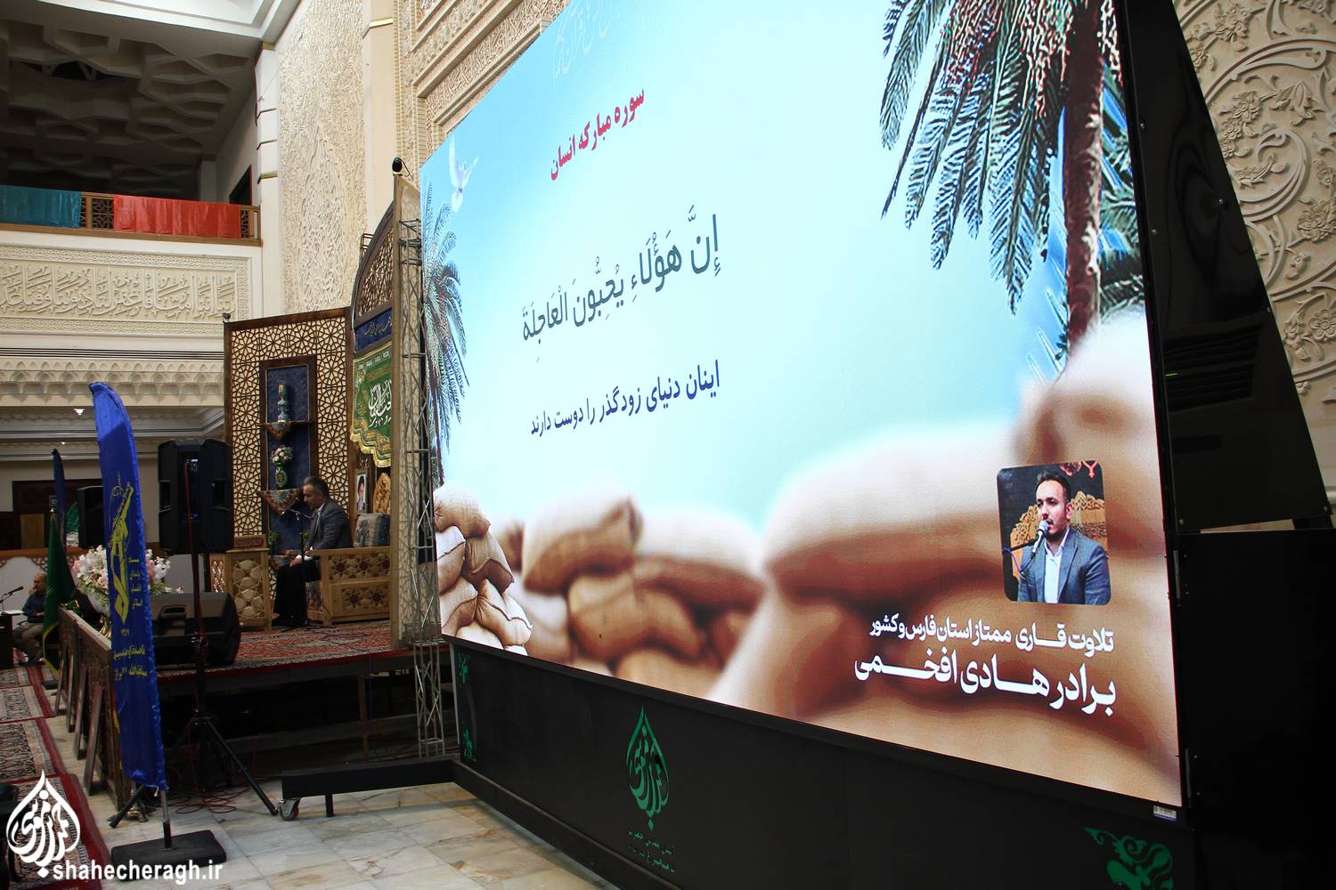 به گزارش روابط عمومی و امور بین الملل آستان مقدس، در این مراسم، قاری ممتاز استان فارس؛ هادی افخمی و قاری نوجوان؛ امیرحسین خجسته فر، آیاتی چند از کلام الله مجید را تلاوت کردند.