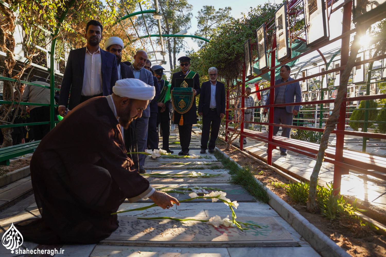 عصر امروز پنج‌شنبه ۳ مهرماه، به‌مناسبت گرامی‌داشت هفته دفاع مقدس، تولیت و جمعی از کارکنان و خدام آستان مقدس احمدی و محمدی علیهماالسلام، با حضور در گلزار شهدای شیراز، ضمن قرائت فاتحه و گلباران قبور مطهر شهداء، با آرمان‌های والای شهیدان تجدید میثاق کردند.