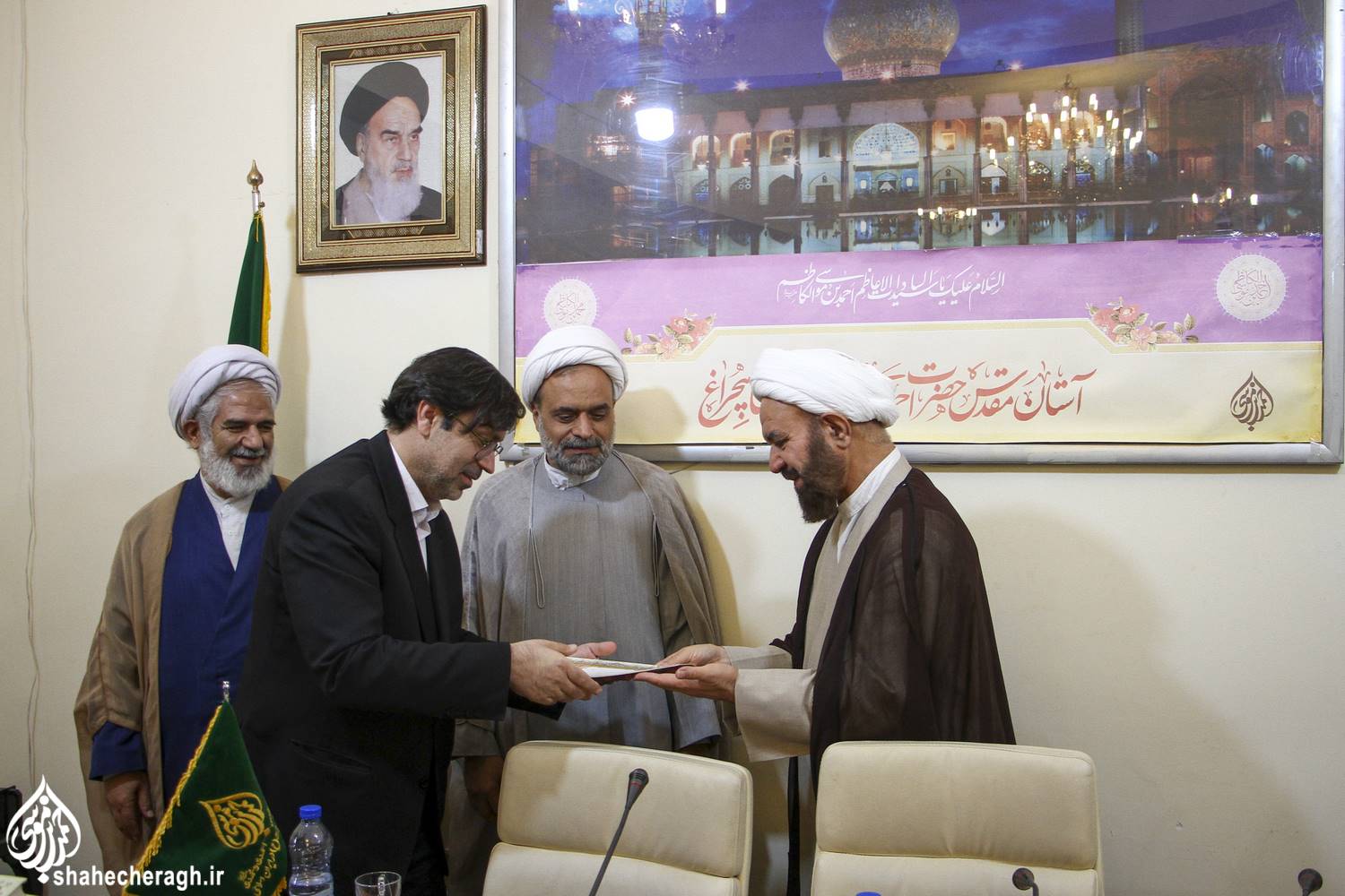 حجت الاسلام والمسلمین مقامی مسئول نهاد نمایندگی مقام معظم رهبری(دام ظله) در دانشگاه های استان فارس، به همراه رابطین قرآن و عترت و نهج البلاغه دانشگاههای استان، به آستان مقدس حضرت شاهچراغ علیه السلام، مشرف شد و با حجت الاسلام و المسلمین دکتر کلانتری، تولیت این بارگاه منور، دیدار و گفتگو کرد.