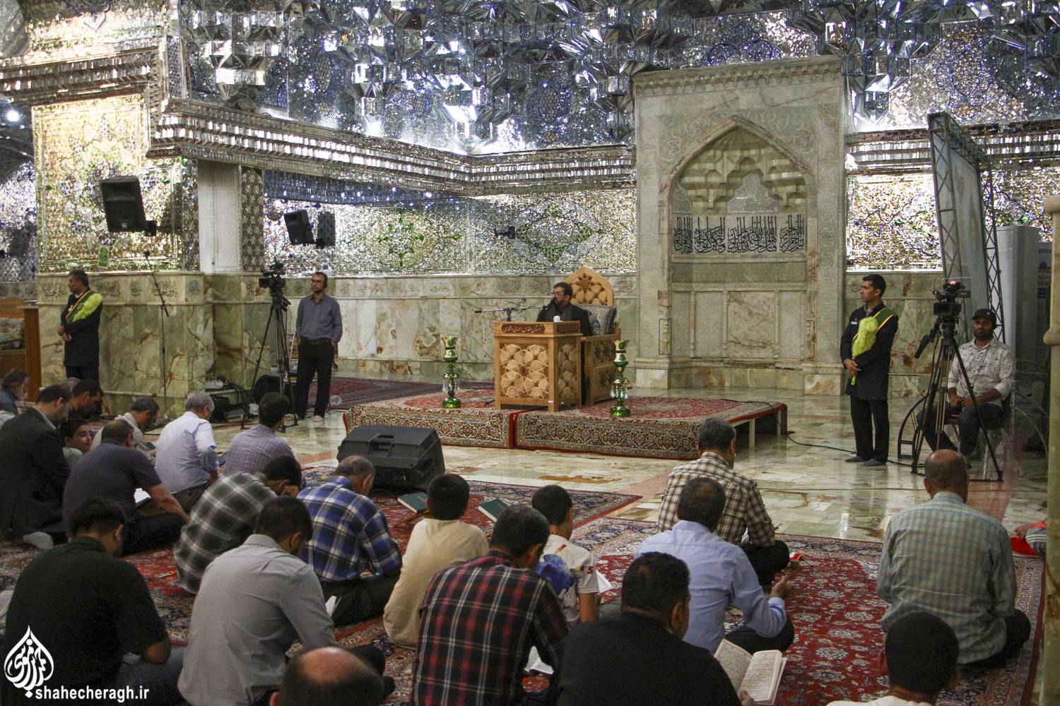 به گزارش روابطعمومی و امور بینالملل آستان مقدس، در این مراسم که بهصورت زنده از شبکه های قرآن و فارس پخش شد، حجتالاسلام والمسلمین حسینی به ایراد سخن پرداخت و حاج مرتضی طاهری، دعای روحبخش کمیل و سیّدرضا نجیبی، آیاتی چند از کلام الله مجید را قرائت کردند.