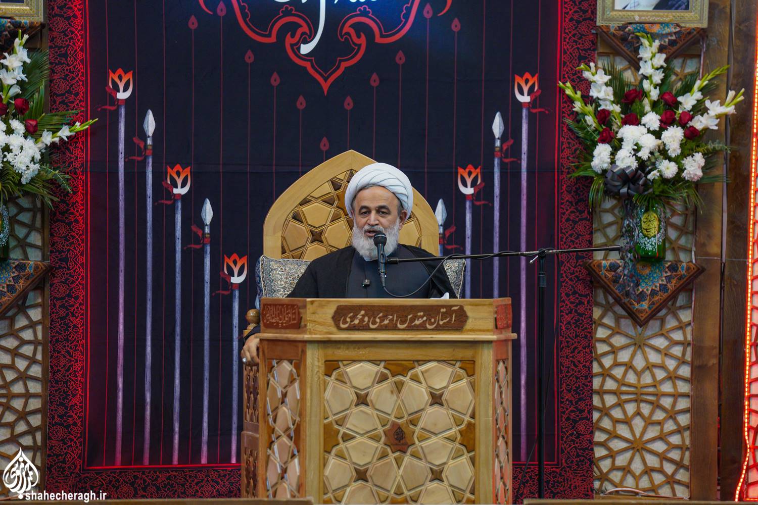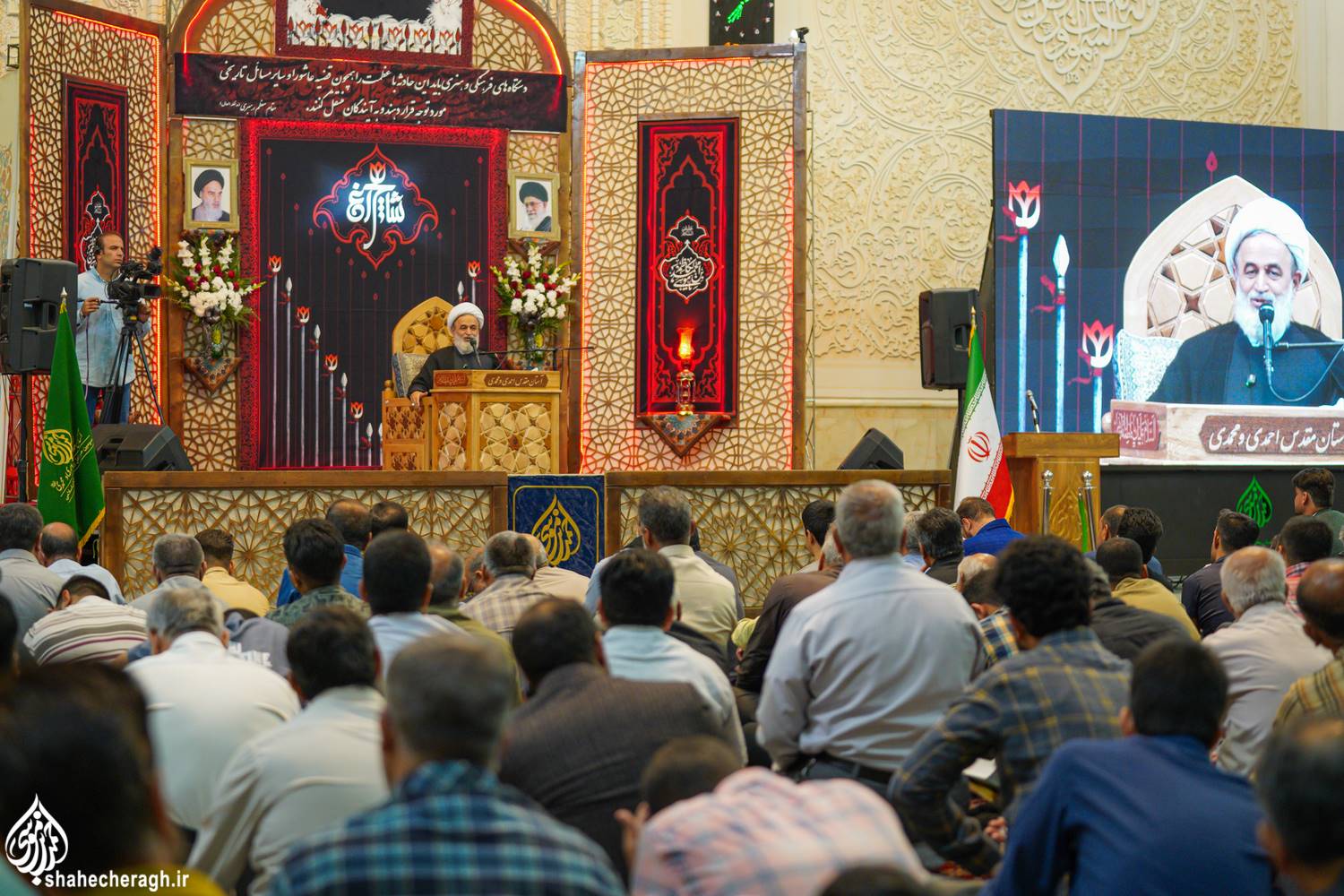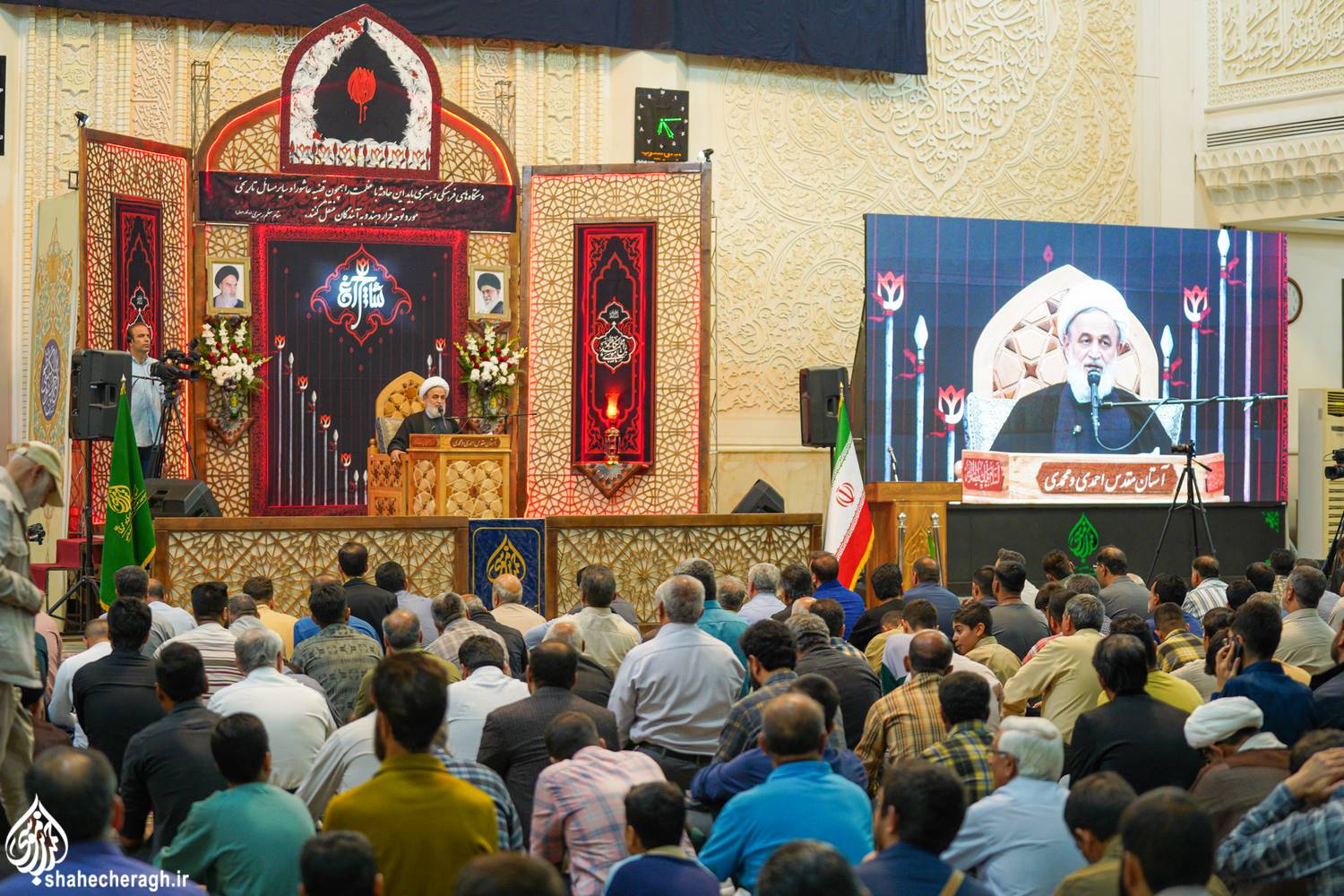 به گزارش روابط عمومی و امور بین الملل آستان مقدس، در این مراسم حجتالاسلام و المسلمین پناهیان به ایراد سخن پرداخت و حاج میثم مطیعی، در رثای شهدای گلگونکفن حرم مطهر، مرثیهسرایی کرد.