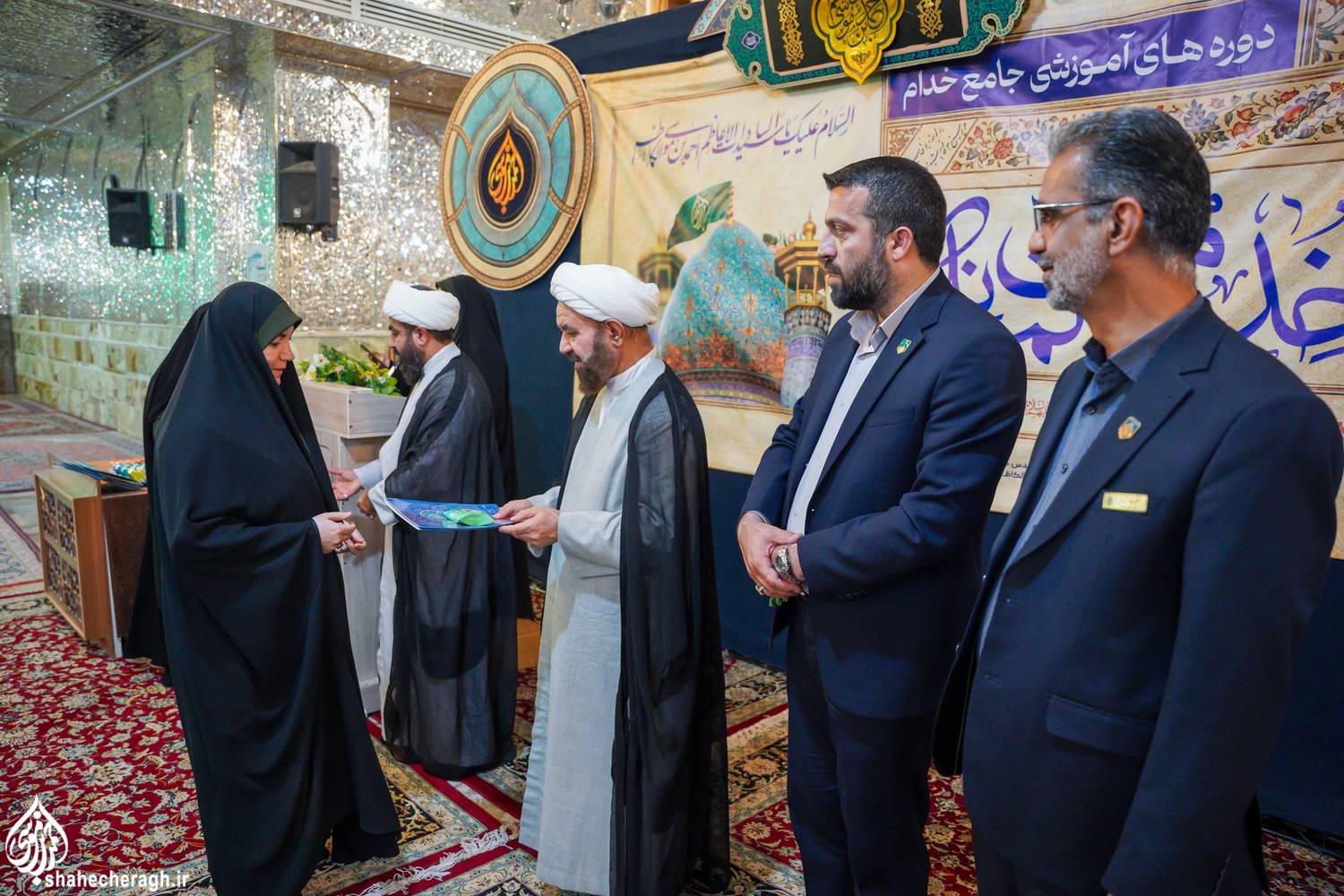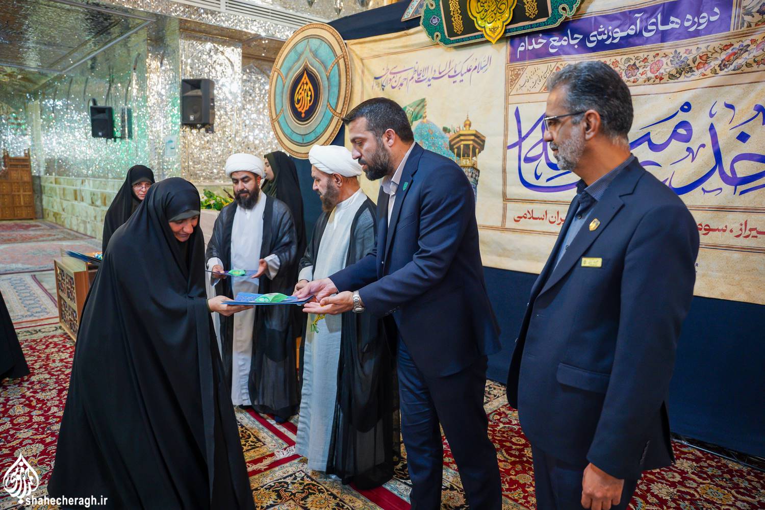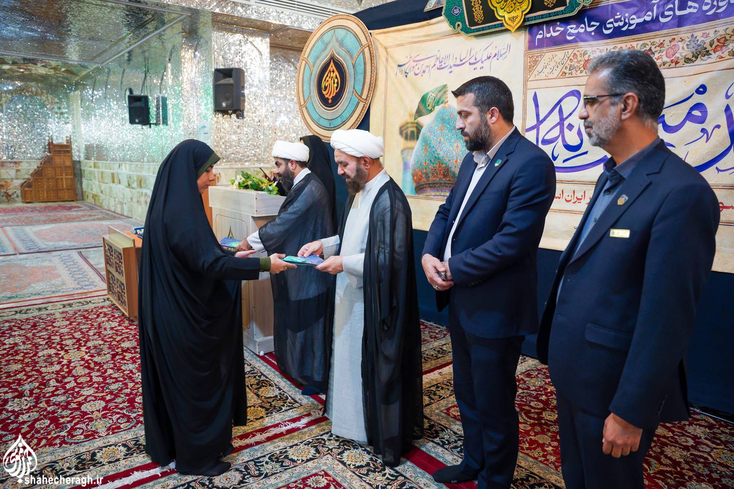 مراسم اختتامیه دوره جامع آموزشی «خدمتِ عالِمانه» ویژه «گروه آمرین» خدام افتخاری خواهر، با حضور حجت الاسلام والمسلمین دکتر ابراهیم کلانتری؛ تولیت آستان مقدس احمدی و محمدی علیهماالسلام، در رواق دارالذکر حرم مطهر برگزار شد.