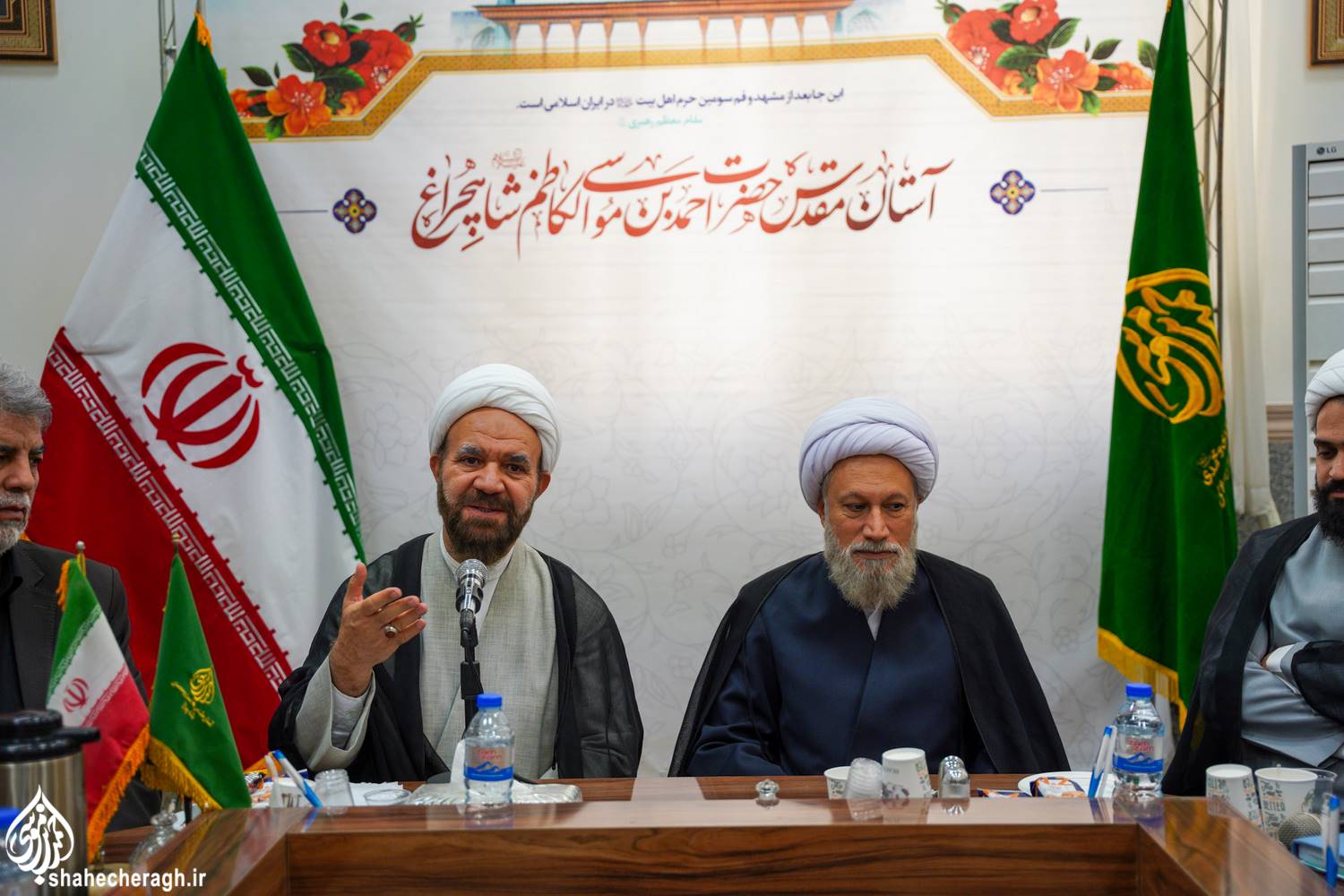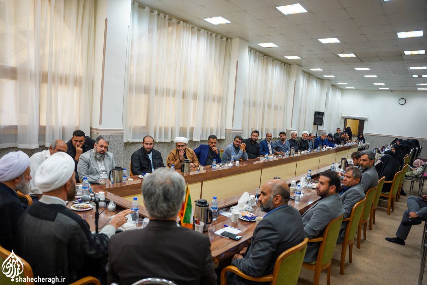 چهارشنبه، ۱۴ آبانماه، جمعی از مدیران مدارس تربیت محور شیراز به حرم مطهر حضرت احمدبن موسی الکاظم علیهماالسلام مشرف شدند و با حجت الاسلام والمسلمین دکتر کلانتری؛ تولیت این بارگاه منور و آیت الله دژکام؛ نماینده ولی فقیه در استان فارس و امام جمعه شیراز، دیدار و گفتگو کردند.