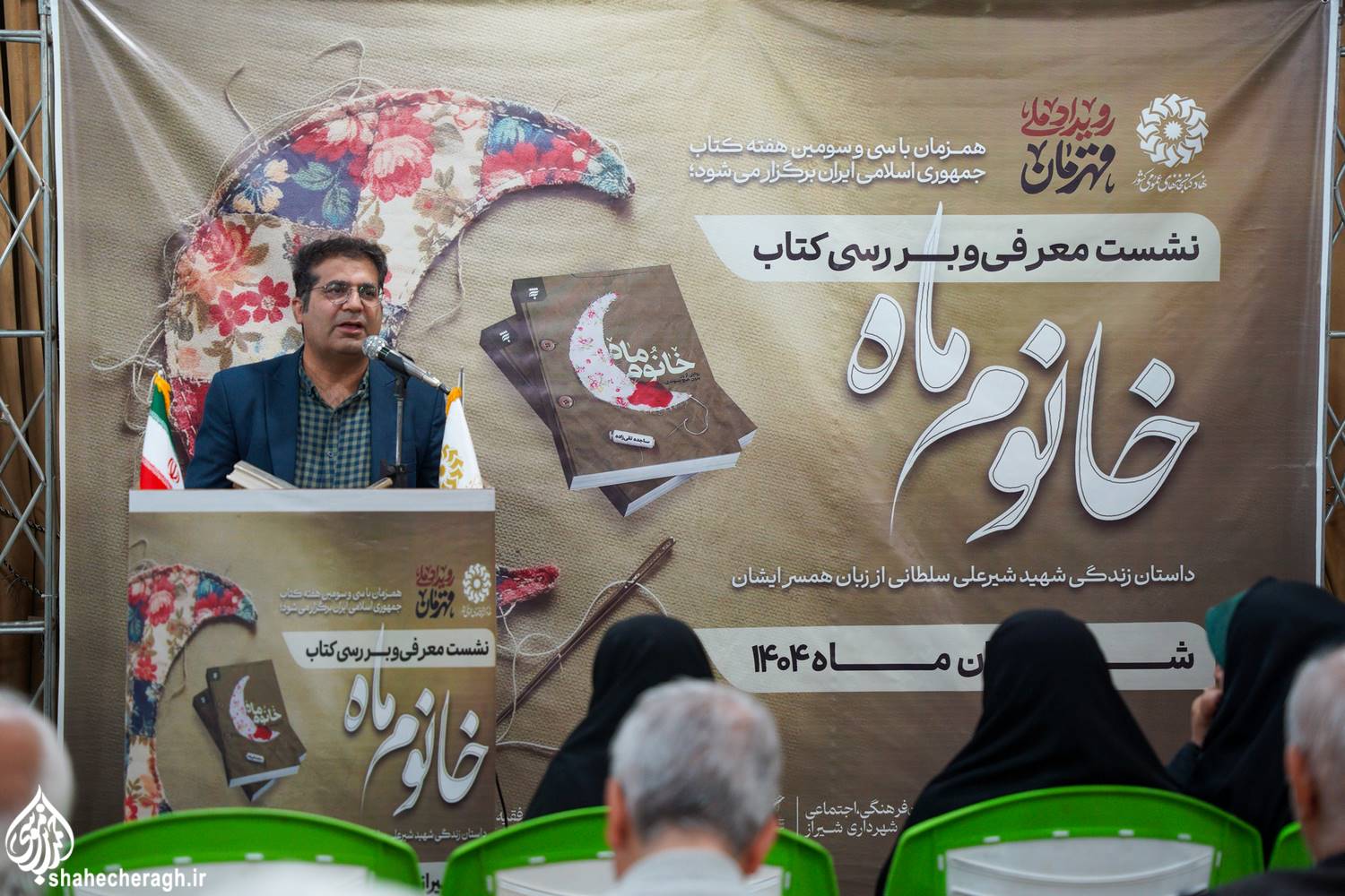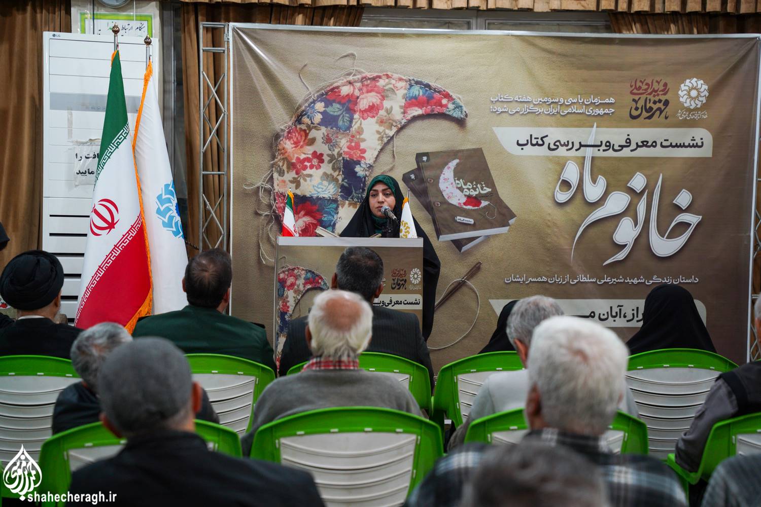 همزمان با هفته کتاب، آئین رونمایی از کتاب «خانومْ ماه» با حضور خانواده  معزز شهید والامقام؛ شیرعلی سلطانی و نویسنده اثر، خانم ساجده تقی‌زاده، در مسجدالمهدی شیراز برگزار شد.