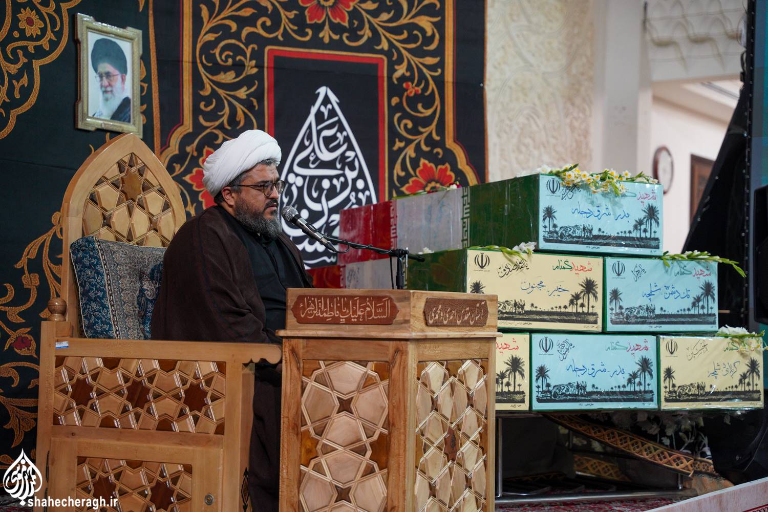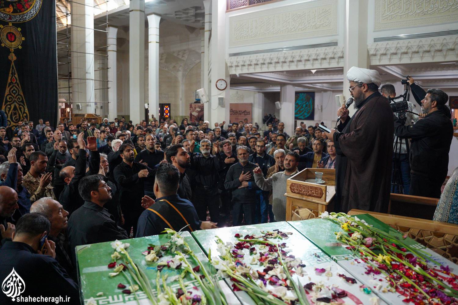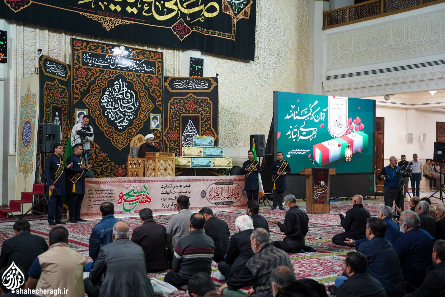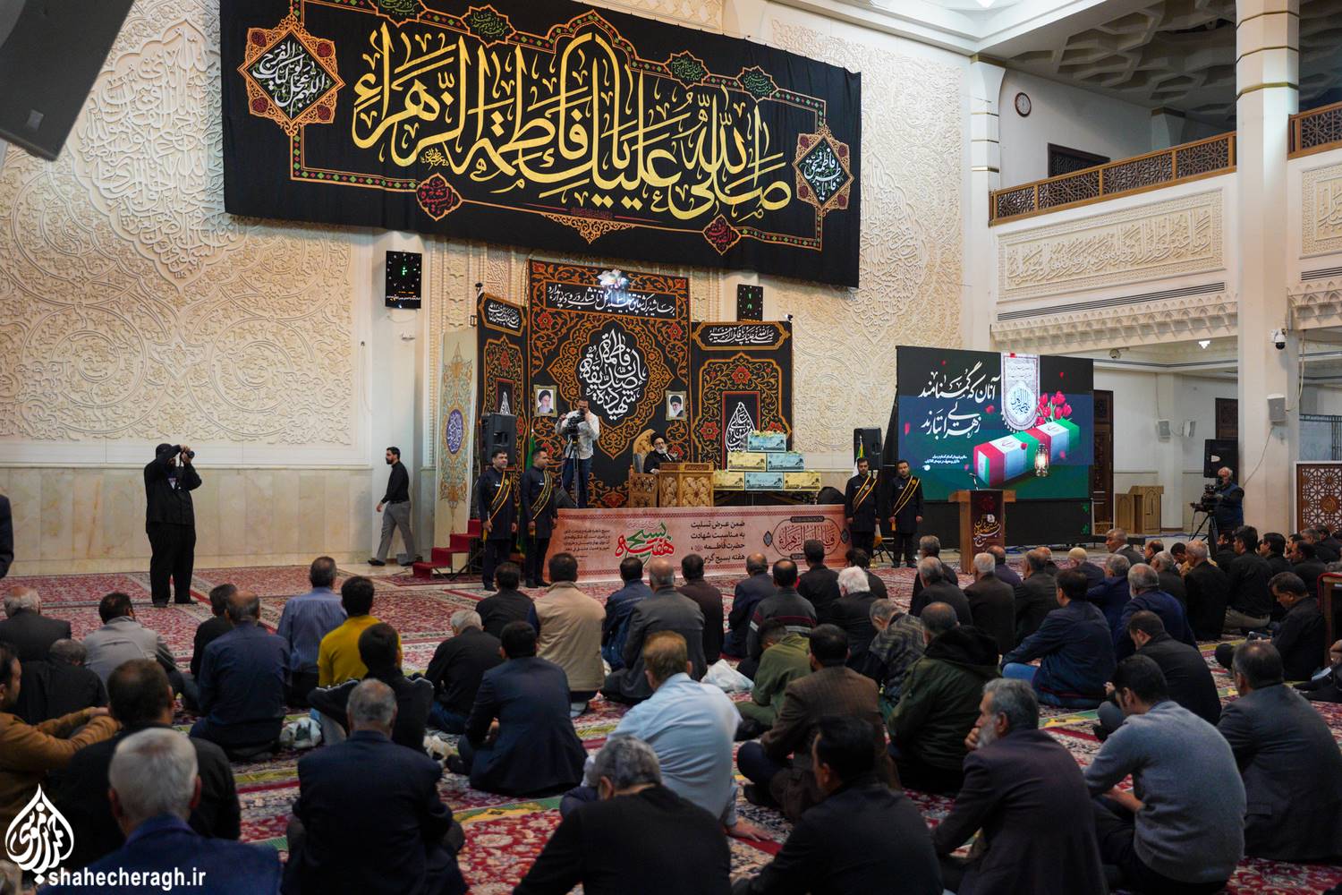 به گزارش روابط عمومی و امور بین الملل آستان مقدس حضرت احمدبن موسی الکاظم شاهچراغ علیه السلام، به‌همین مناسبت، امشب یکشنبه ۲ آذر ۱۴۰۴، در شب شهادت مظلومانه بانوی دوعالَم، مراسم سوگواری همراه با آیین وداع با پیکرهای مطهر شش شهید گمنام دوران دفاع مقدس، با حضور زائران و مجاوران حرم مطهر در شبستان امام خمینی(قدس سره) برگزار شد.