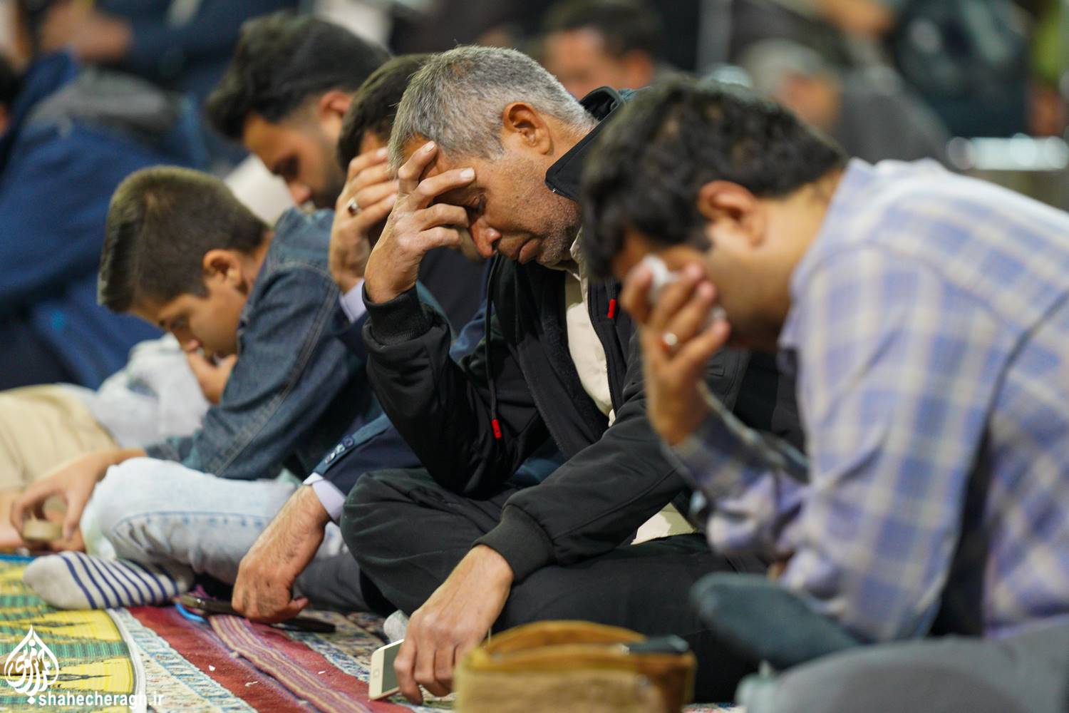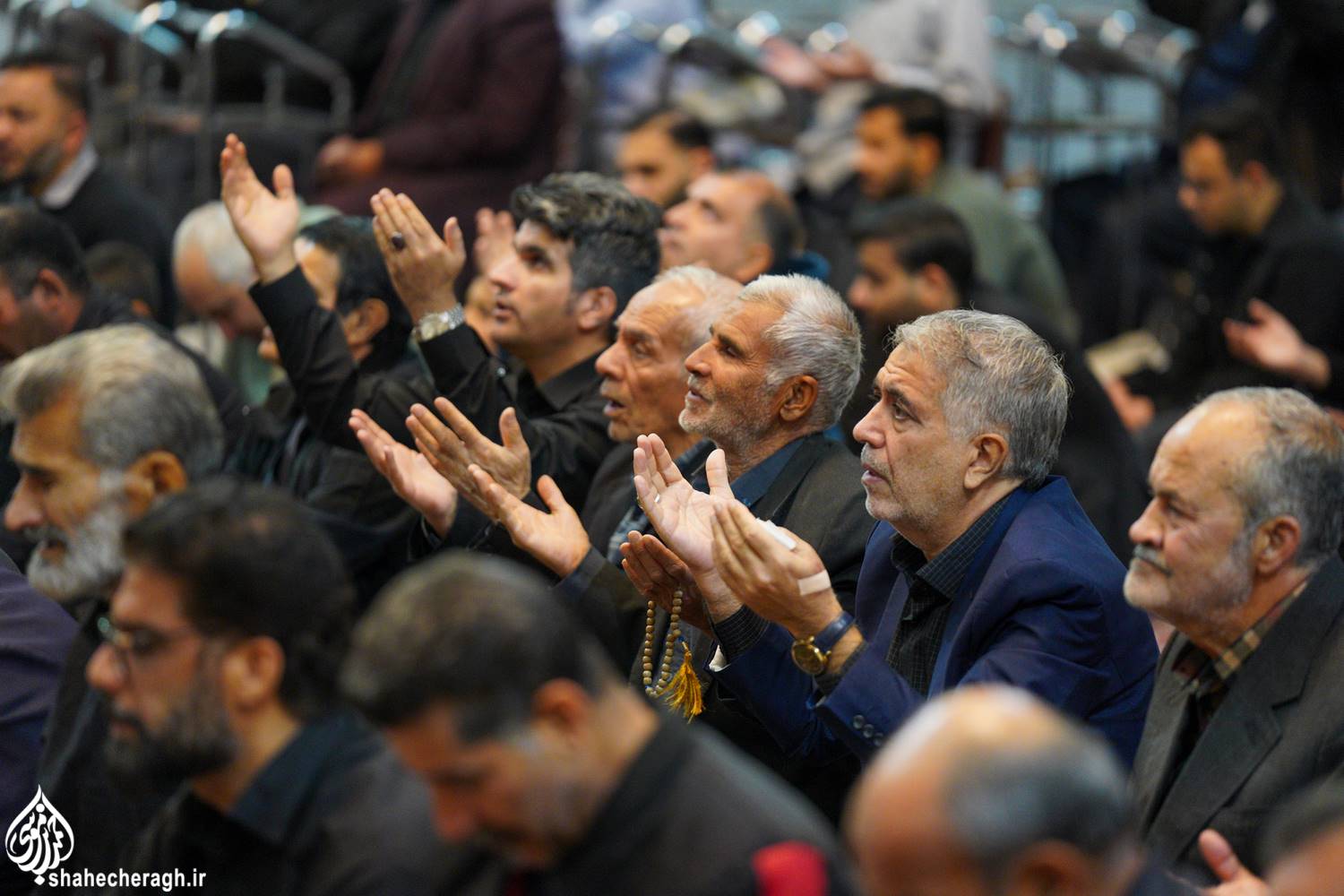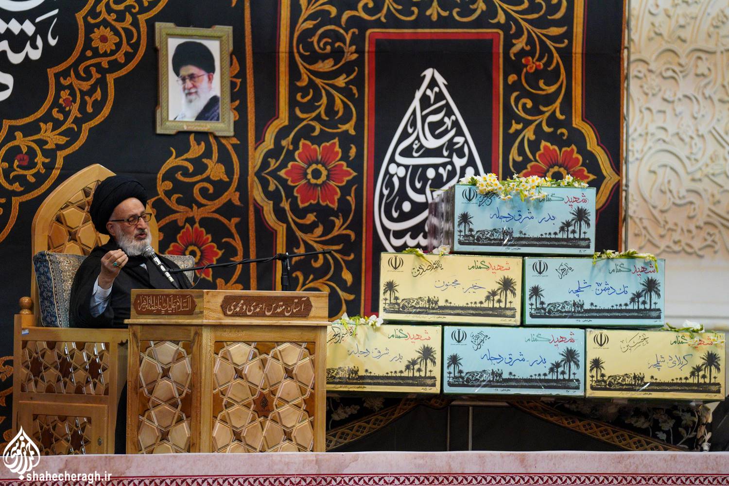 مراسم عزاداری شب شهادت حضرت فاطمةالزهرا علیهاالسلام، در حرم مطهر حضرت احمدبن موسی الکاظم علیهماالسلام/ آیین وداع با پیکرهای مطهر شش شهید گمنام دوران دفاع مقدس