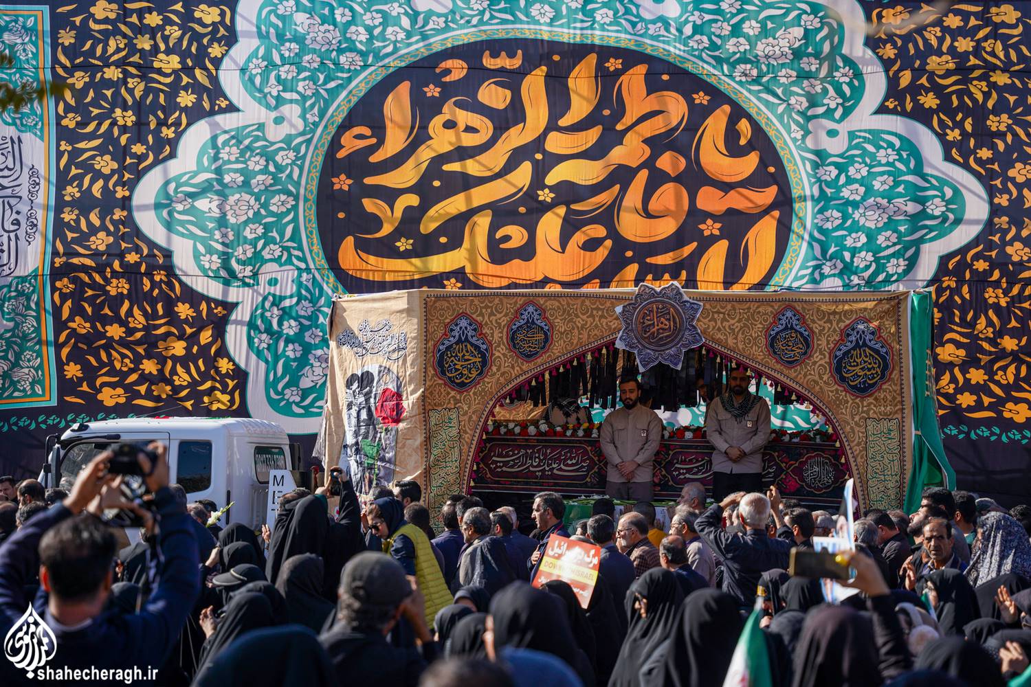 • مراسم عزاداری شب شهادت حضرت فاطمةالزهرا علیهاالسلام، در حرم مطهر حضرت احمدبن موسی الکاظم علیهماالسلام/ آیین وداع با پیکرهای مطهر شش شهید گمنام دوران دفاع مقدس