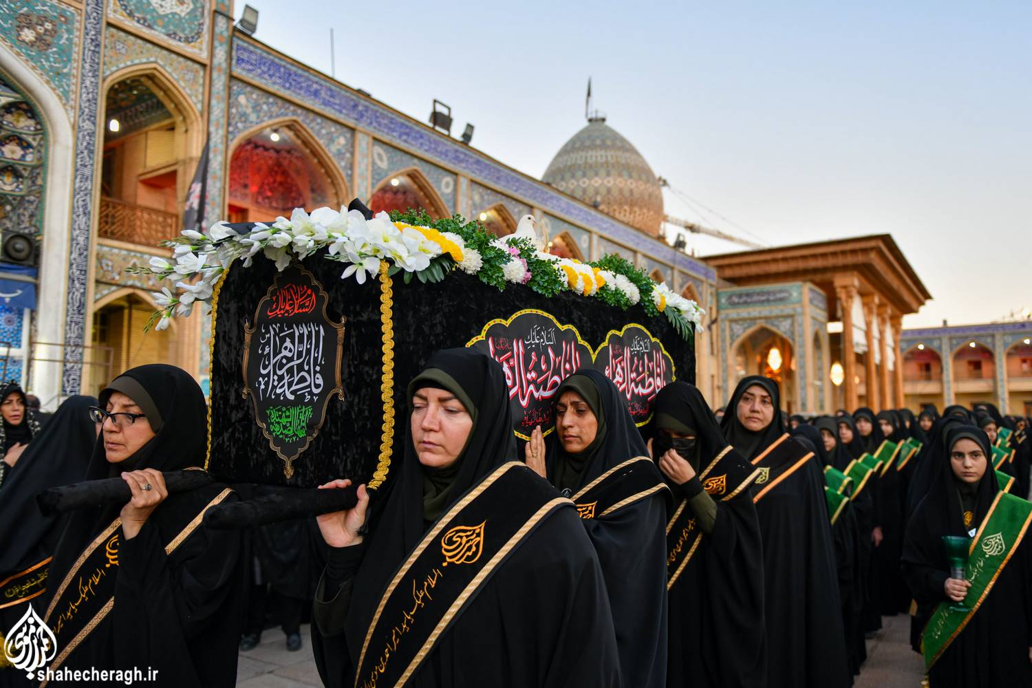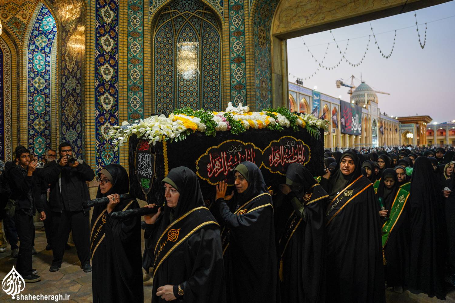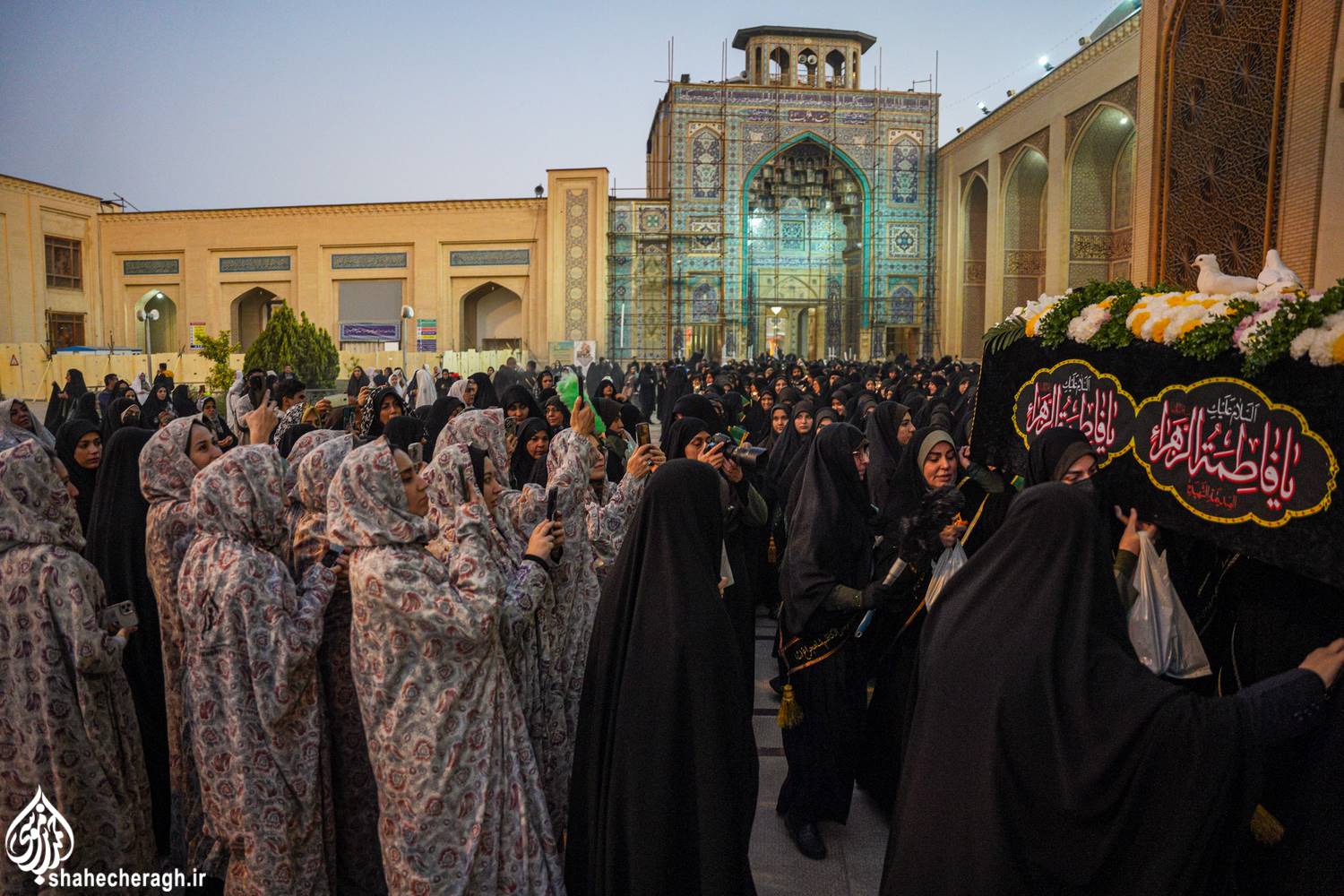 امشب، دوشنبه ۳ آذر ۱۴۰۴، در شام شهادت حضرت فاطمة الزهرا سلام الله علیها، خدام حرم مطهر در آیینی معنوی، ضمن خطبهخوانی و تشییع نمادین سَیّدةُ نساءِ العالَمین از حرم مطهر حضرت سیدمیرمحمد علیه السلام و قبور مطهر شهداء، تا حرم مطهر حضرت احمدبن موسی الکاظم علیهماالسلام و شبستان امام خمینی(قدس سره)، با در دستداشتن لاله های روشن، در رثای شهادت ام ابیها(علیهاالسلام) به عزاداری و مرثیهسرایی پرداختند.