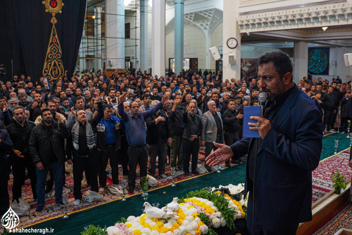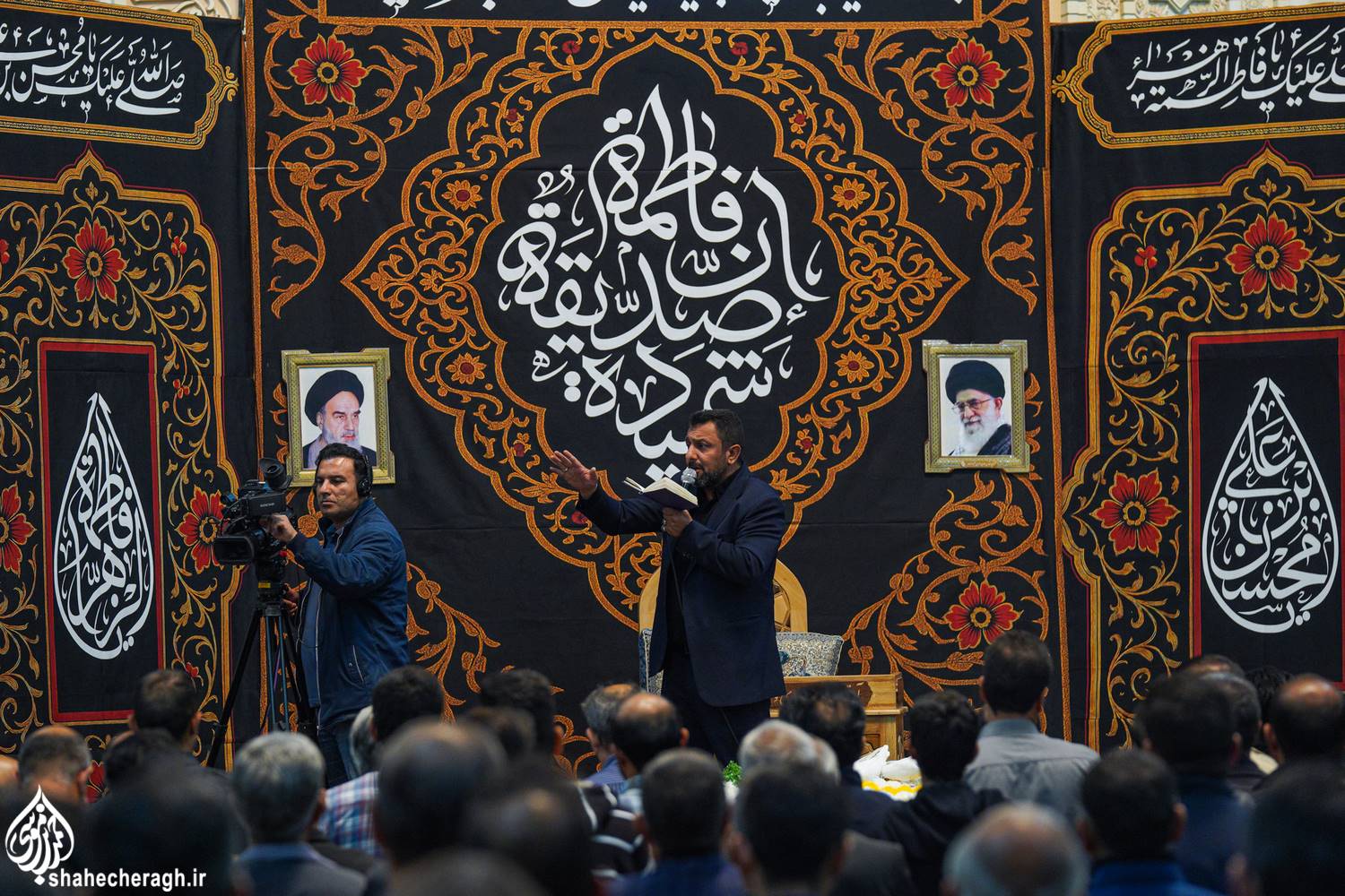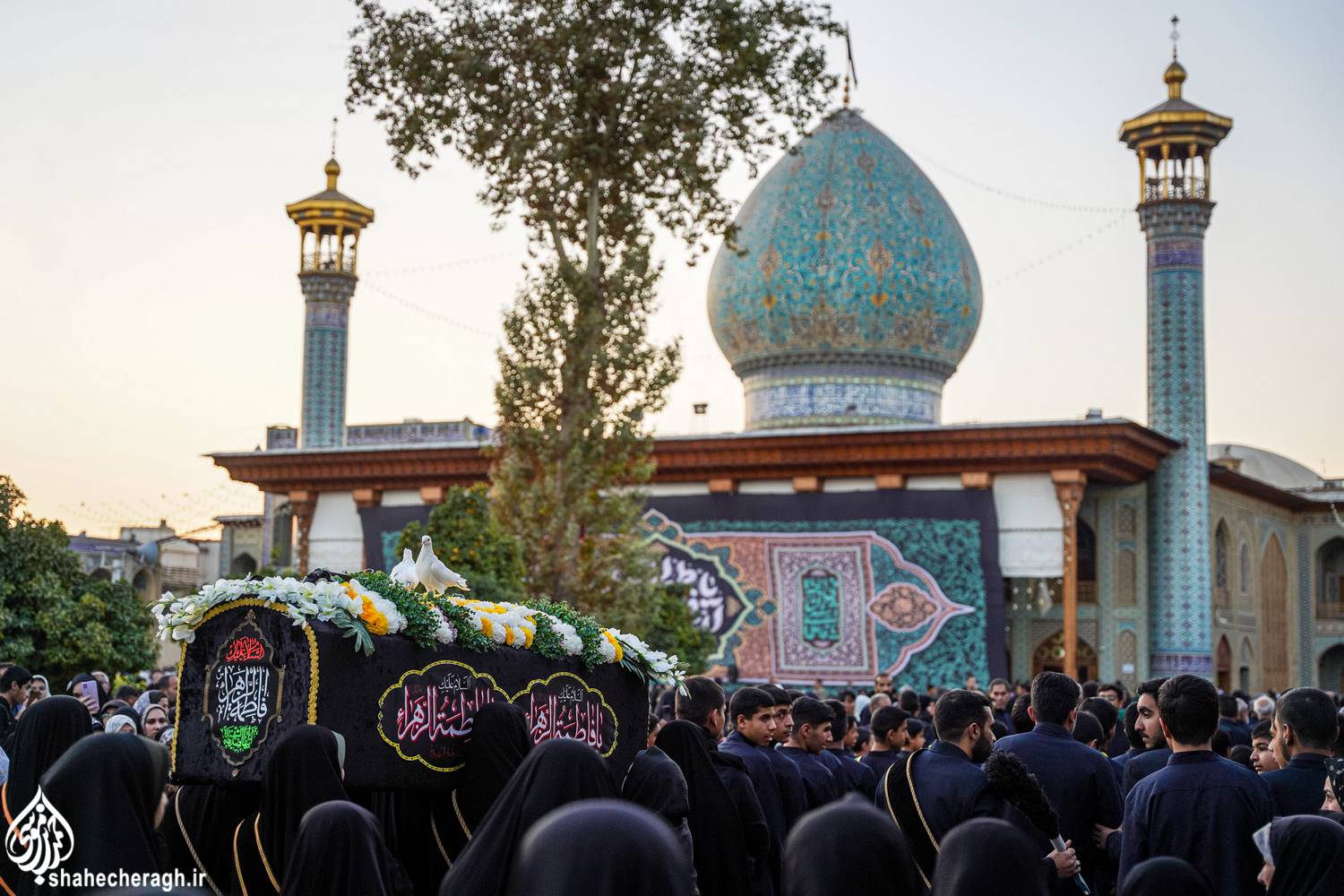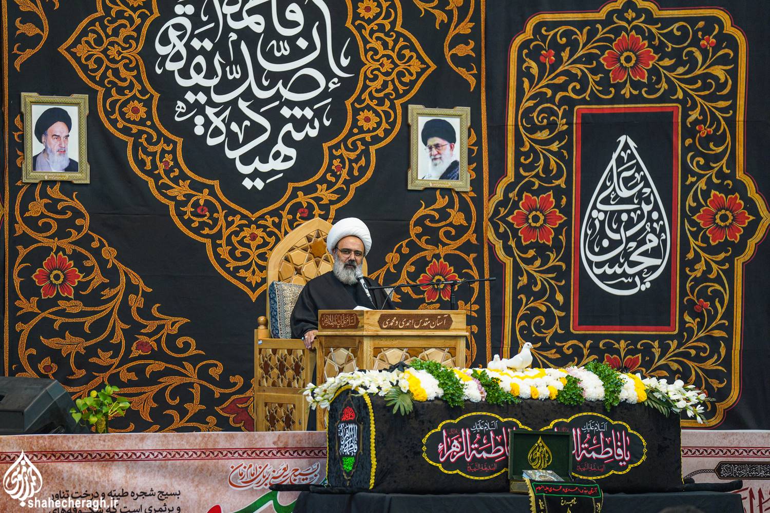 امشب، دوشنبه ۳ آذر ۱۴۰۴، در شام شهادت حضرت فاطمة الزهرا سلام الله علیها، خدام حرم مطهر در آیینی معنوی، ضمن خطبهخوانی و تشییع نمادین سَیّدةُ نساءِ العالَمین از حرم مطهر حضرت سیدمیرمحمد علیه السلام و قبور مطهر شهداء، تا حرم مطهر حضرت احمدبن موسی الکاظم علیهماالسلام و شبستان امام خمینی(قدس سره)، با در دستداشتن لاله های روشن، در رثای شهادت ام ابیها(علیهاالسلام) به عزاداری و مرثیهسرایی پرداختند.