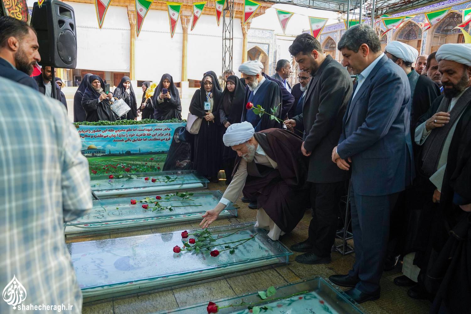 صبح امروز چهارشنبه، ۱۵ بهمنماه ۱۴۰۴، حجت الاسلام والمسلمین دکتر کلانتری؛ تولیت حرم مطهر و رئیس انجمن علمی انقلاب اسلامی ایران، آیت الله دژکام؛ نماینده ولی فقیه در استان فارس و امام جمعه شیراز و اساتید شرکتکننده در شانزدهمین نشست سالانه اندیشمندان و استادان درس انقلاب اسلامی دانشگاههای کشور، با حضور در محل قبور مطهر شهدای مدفون در حرم مطهر حضرت احمدبن موسی الکاظم علیهماالسلام، با قرائت فاتحه و اهدای شاخه گل، به مقام شامخ این شهدای والامقام، ادای احترام کردند.