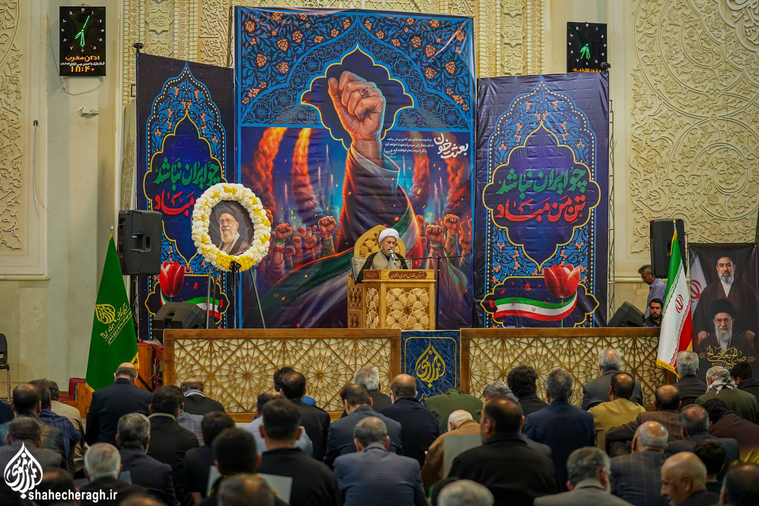 امشب پنجشنبه ۲۰ فروردین ۱۴۰۵، مراسم چهلمین روز شهادت امام سیّدعلی خامنهای(قدّس الله نفسه الزکیه)، با حضور گسترده اقشار مختلف مردم ولایتمدار شیراز، تولیت آستان مقدس حضرت شاهچراغ علیه السلام، نماینده ولی فقیه در استان فارس و امام جمعه شیراز و استاندار فارس، در شبستان امام خمینی(قدس سره) حرم مطهر برگزار شد.