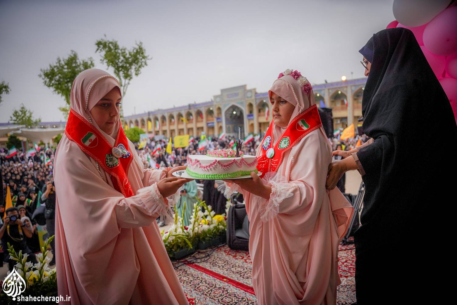 عصر امروز یکشنبه ۳۰ فروردین ۱۴۰۵، بهمناسبت سالروز میلاد خجسته حضرت فاطمه معصومه سلام الله علیها و گرامیداشت دانشآموزان دختر شهید شهر میناب، اجتماع بزرگ بانوان و دختران جانفدای ایران اسلامی، با حضور حجت الاسلام والمسلمین دکتر کلانتری؛ تولیت آستان مقدس، در این بارگاه منوّر برگزار شد.