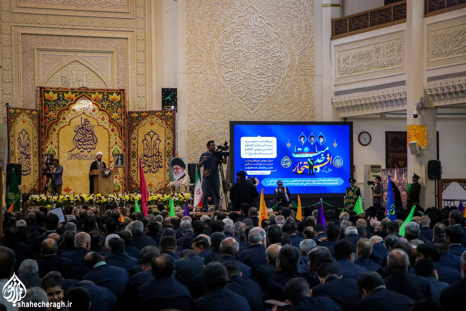 عصر امروز پنجشنبه ۳ اردیبهشت ۱۴۰۵، بهمناسبت ششم ذی القعده روز بزرگداشت حضرت شاهچراغ علیه السلام، همایش بزرگ «افتخار خدمت» و آیین تجدید میثاق خدام آستان مقدس با سیدالسادات الاعاظم؛ حضرت احمدبن موسی الکاظم(علیهماالسلام) و قائد شهید امّت؛ حضرت آیت الله العظمی امام سیّد علی خامنهای(رضوان الله علیه) و تجدید بیعت با رهبر معظّم انقلاب اسلامی؛ امام سید مجتبی خامنهای(حفظه الله)، در شبستان امام خمینی(قدس سره) برگزار شد.