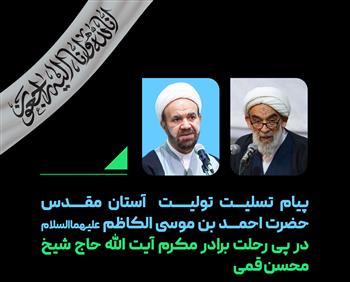 حجت الاسلام و المسلمین دکتر کلانتری، تولیت آستان مقدس احمدی و محمدی علیهماالسلام، در پی درگذشت اخوی مکرم آیت الله حاج شیخ محسن قمی، در پیامی این ضایعه مولمه را به ایشان تسلیت گفت.