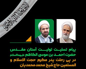 حجت الاسلام و المسلمین دکتر کلانتری، تولیت آستان مقدس احمدی و محمدی علیهماالسلام، در پی درگذشت پدر گرامی حجت الاسلام والمسلمین حاج شیخ محمد محمدیان، در پیامی این ضایعه مولمه را به ایشان تسلیت گفت.
