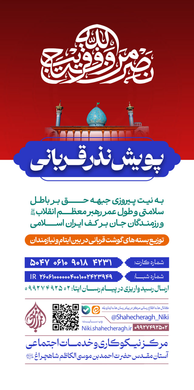 💳 مشارکت در این امر خیر:شماره کارت: ۵۰۴۷۰۶۱۰۹۰۱۸۴۲۳۱شماره شبا: IR۲۶۰۶۱۰۰۰۰۰۰۴۰۰۱۰۰۲۴۲۳۹۴۹📳 ارسال رسید واریز در پیامرسان ایتا به شماره:۰۹۹۲۷۴۹۲۵۰۲